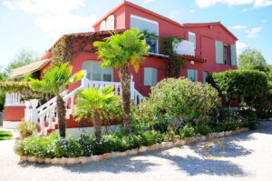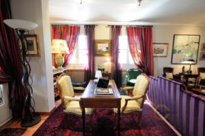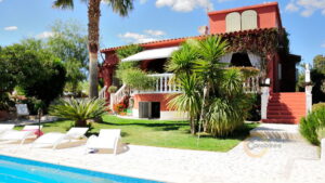On the first floor you find the luxurious master suite with bedroom, large office and living area, en suite bathroom with shower and bath tub, fitted wardrobes plus a large dressing room. The villa has an alarm system, is fully air conditioned and has oil central heating. All the windows are fitted with wooden shutters. Entrance is via beautiful reclaimed wrought iron electric gates and a private gravel drive bordered by cypresses. The gardens are wonderful and feature many mature trees, palms, shrubs, a lawn, and there are many restored dry stone walls, a fountain and different seating areas.