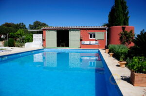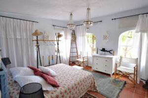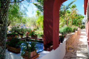 It boasts a large plot of land of 15.000 m2, of which 11.500 m2 are fenced and beautifully landscaped. There is a detached double garage, an 11×5.5m swimming pool with exterior shower, pool terrace, lawn, and a beautiful pool / guest house of around 50m2 with large living-dining room, kitchen, bathroom and bedroom. The pool house is also equipped with heating and air conditioning. Furthermore there is an old restored stone casita for storage.