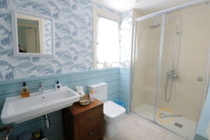 All rooms are equipped with air conditioning (hot and cold). On the ground floor you find the beautiful double aspect kitchen with large dining table, equipped, and with American fridge-freezer. Steps lead into the first floor hallway with spacious dual aspect salon with two balconies, as well as a cloakroom with WC, washing machine and dryer. There are a total of four bedrooms, three of which are in the main house. Additionally, you benefit from a fourth en-suite bedroom with a separate entrance on the lower level of the building. On the second floor is the large master bedroom, nicely furnished and also dual aspect with two balconies. You have a nice bathroom with double width shower. On the next floor are two more bedrooms, each with a balcony, and another very nice bathroom with large shower. The roof terrace has a large dining table, chairs and sun loungers as well as a quality barbecue. The terrace receives sun all day and you can enjoy splendid views of the sea, the south side of Peniscola and towards the coast and the mountains of the Sierra d’Irta nature reserve.